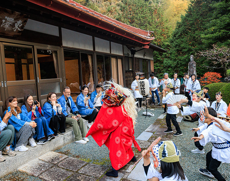 この体験では、獅子舞を間近で鑑賞し、幸せを祈願するとともに、