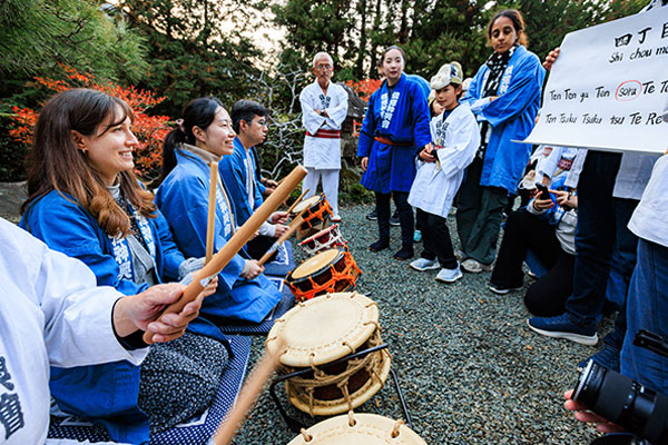 実際にお囃子の太鼓を叩いてみることで、日本の伝統文化に触れることができます。