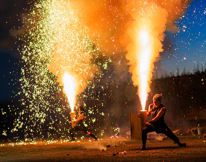 目の前で立ち上がる炎と音、体に響く振動を、間近で感じてください。